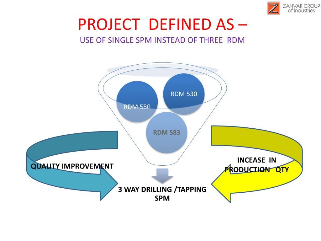PROJECT DEFINED AS –USE OF SINGLE SPM INSTEAD OF THREE RDM INCEASE IN PRODUCTION QTY QUALITY IMPROVEMENT