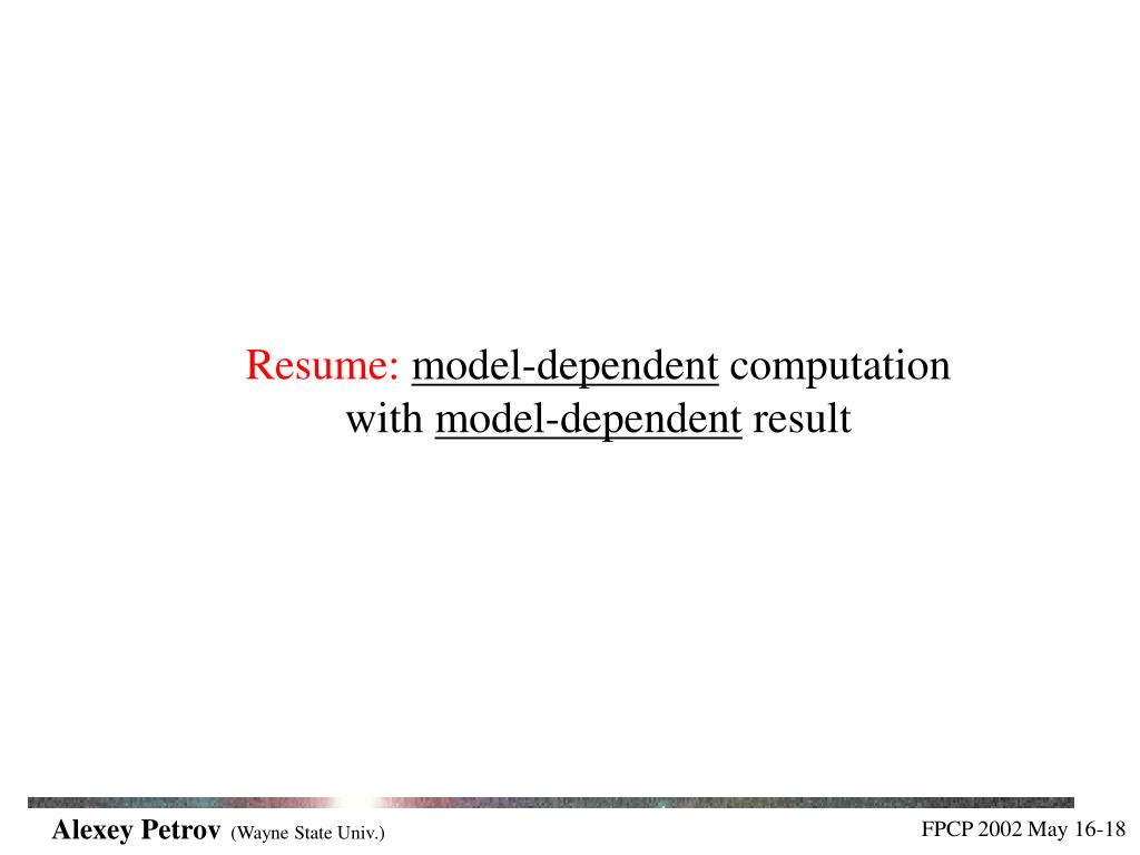 Resume:model-dependent computation with model-dependent result Alexey Petrov(Wayne State Univ.)