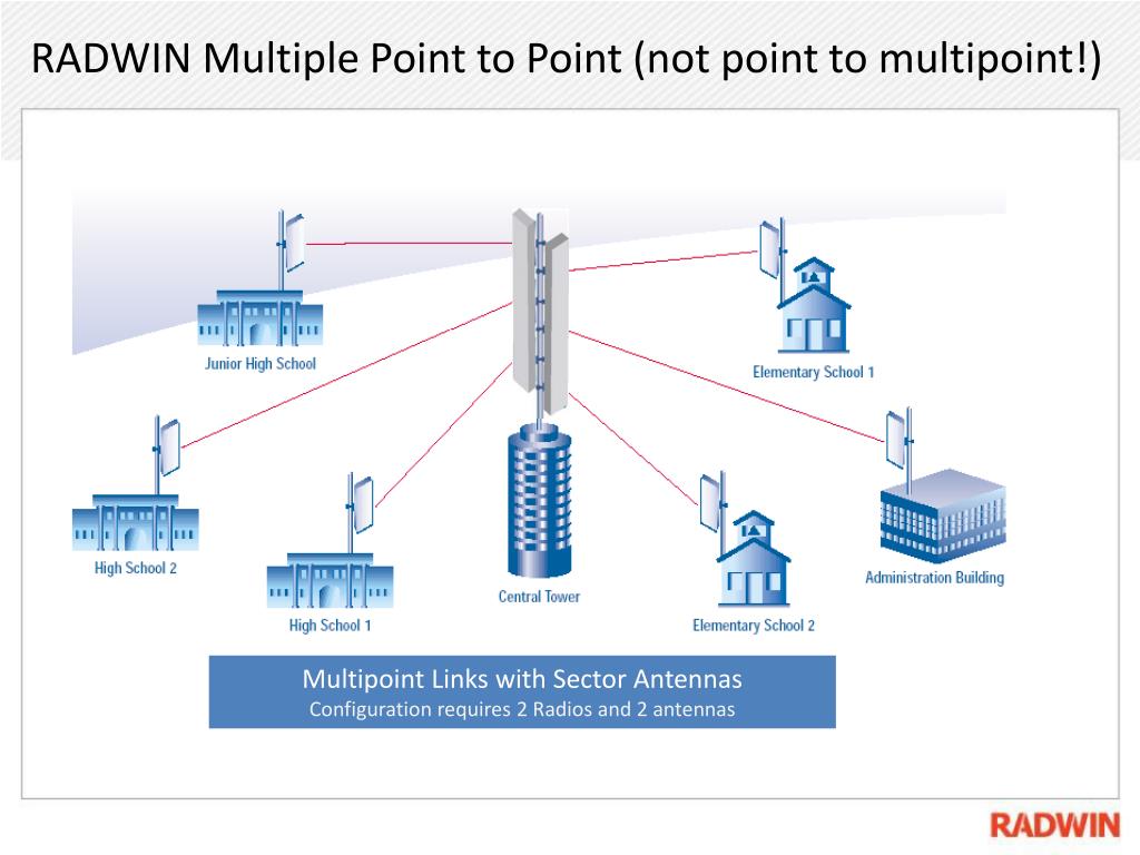 RADWIN Multiple Point to Point (not point to multipoint!) Multipoint Links with Sector Antennas Configuration requires 2 Radios and 2 antennas