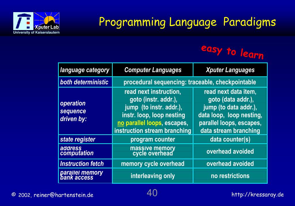Fundamental Ideas available (2) • Programming Xputers • Similarities to programming computers • How not to get confused by similarities • What benefits vs. Computers ? 39