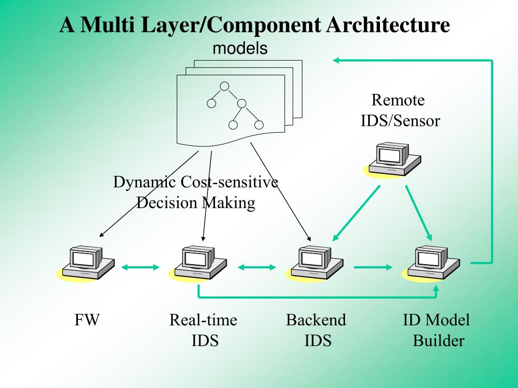 A Multi Layer/Component Architecture models Remote IDS/Sensor Dynamic Cost-sensitive Decision Making FW Real-time IDS Backend IDS ID Model Builder