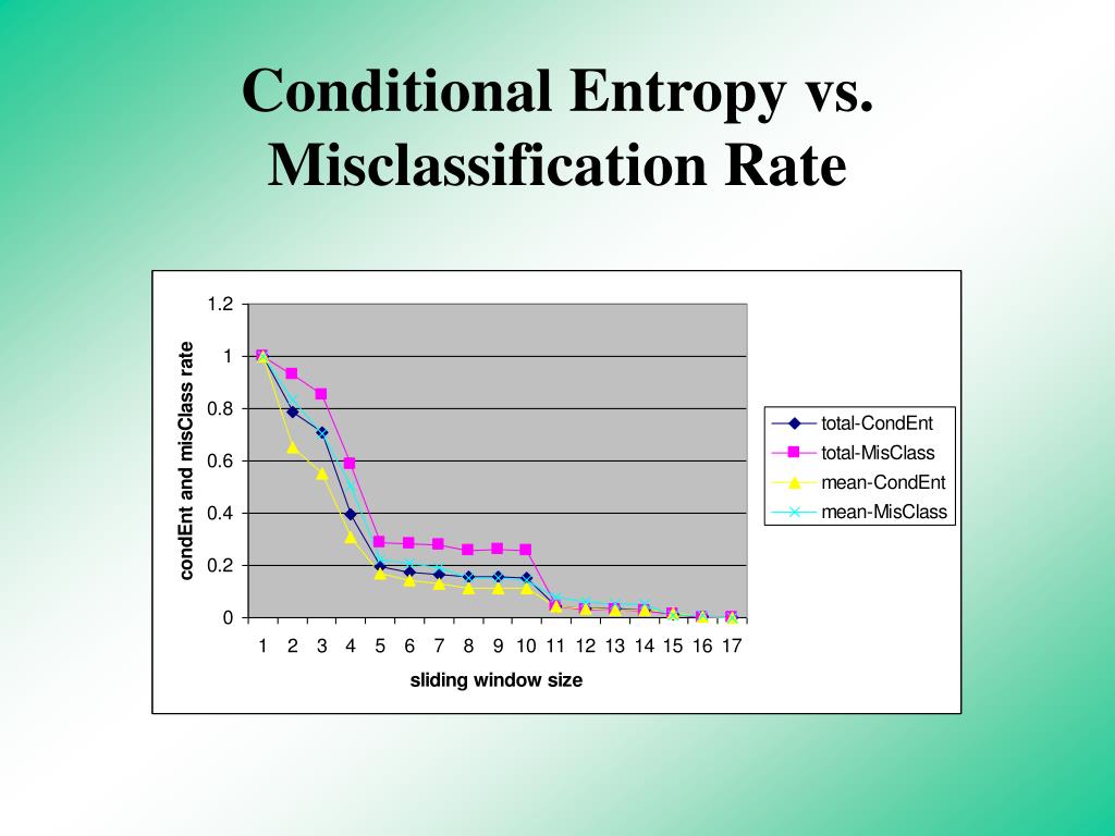Information Gain and Classification • How much can attribute/feature A contribute to the classification process: • the reduction of entropy when the dataset is partitioned according to values of A. • the larger the better. • if A = the first k events in a sequence (i.e., Y) and the class label is the k+1st event • conditional entropy H(X|Y) is just the second term of the Gain(X, A) • the smaller the conditional entropy, the better performance the classifier.