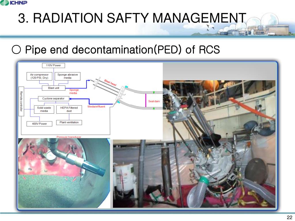 3. RADIATION SAFTY MANAGEMENT ○ Pipe end decontamination(PED) of RCS