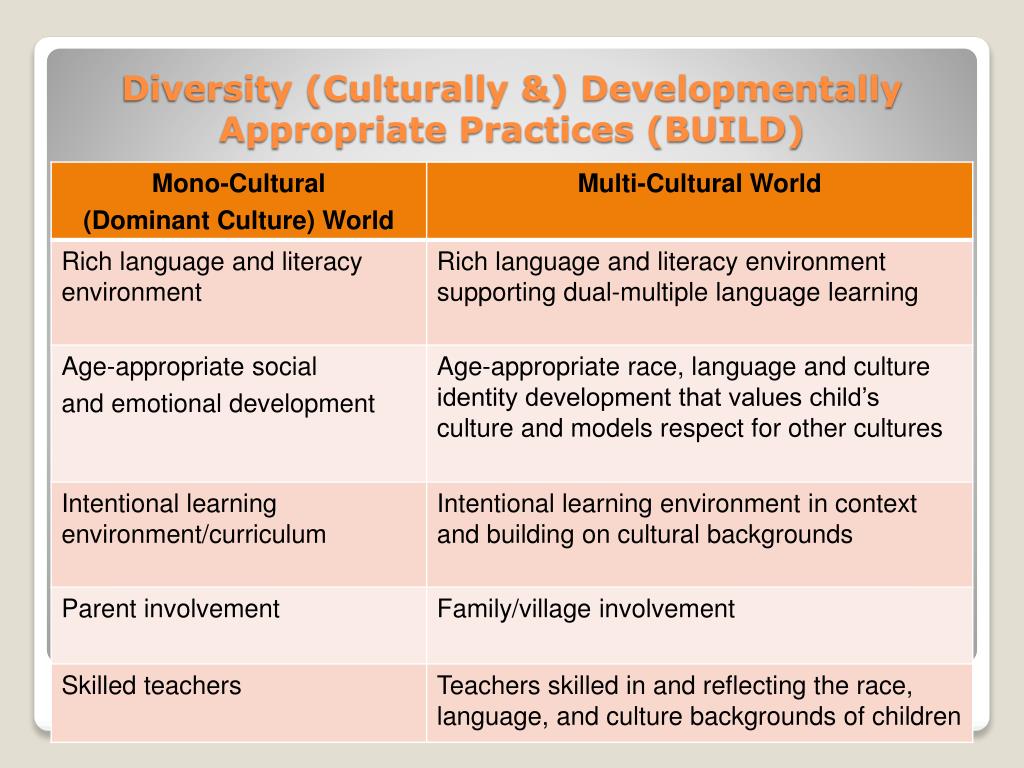 Diversity (Culturally &) Developmentally Appropriate Practices (BUILD)