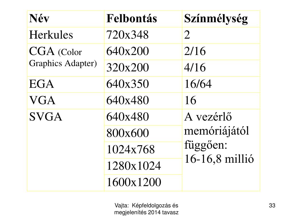 Monitorok jellemző adatai Vajta: Képfeldolgozás és megjelenítés2014 tavasz