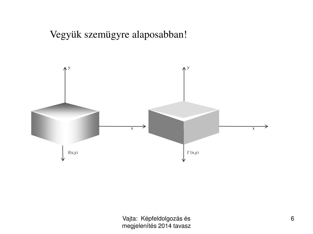 y y x x f(x,y) f '(x,y) Vegyük szemügyre alaposabban! Vajta: Képfeldolgozás és megjelenítés2014 tavasz