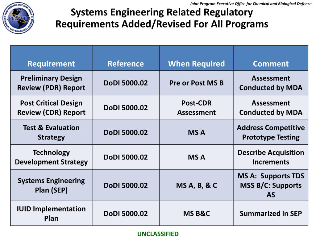 Systems Engineering Related Regulatory Requirements Added/Revised For All Programs
