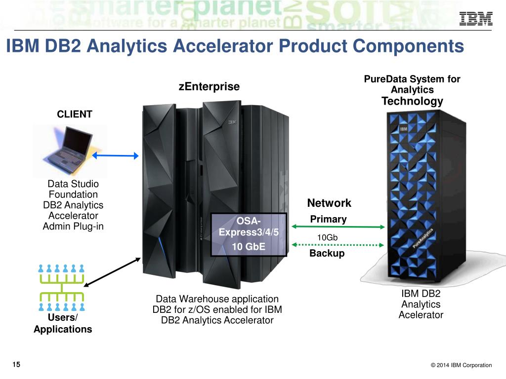 IBM DB2 Analytics Accelerator Product Components PureData System for Analytics Technology zEnterprise CLIENT Data Studio Foundation DB2 Analytics Accelerator Admin Plug-in Network Primary OSA-Express3/4/5 10 GbE 10Gb Backup IBM DB2 Analytics Acelerator Data Warehouse application DB2 for z/OS enabled for IBM DB2 Analytics Accelerator Users/ Applications 15 15 15