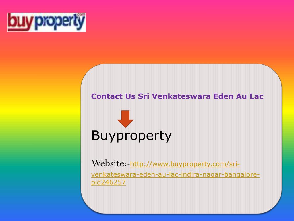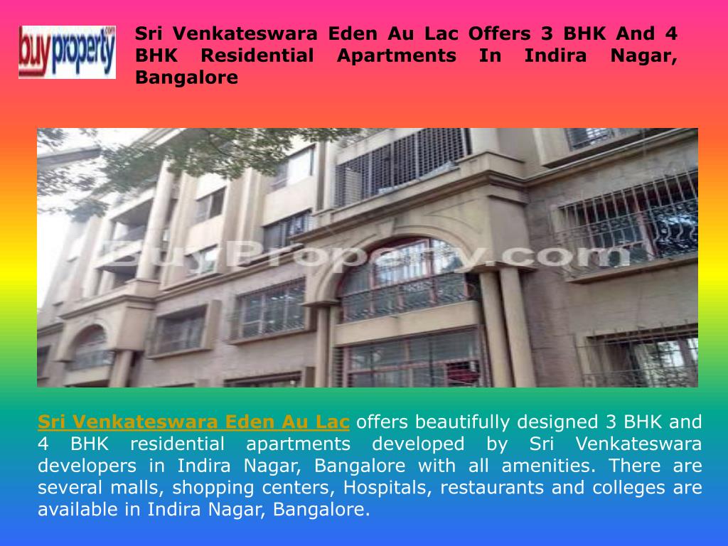 Contact Us Sri Venkateswara Eden Au Lac Buyproperty Website:-http://www.buyproperty.com/sri-venkateswara-eden-au-lac-indira-nagar-bangalore-pid246257