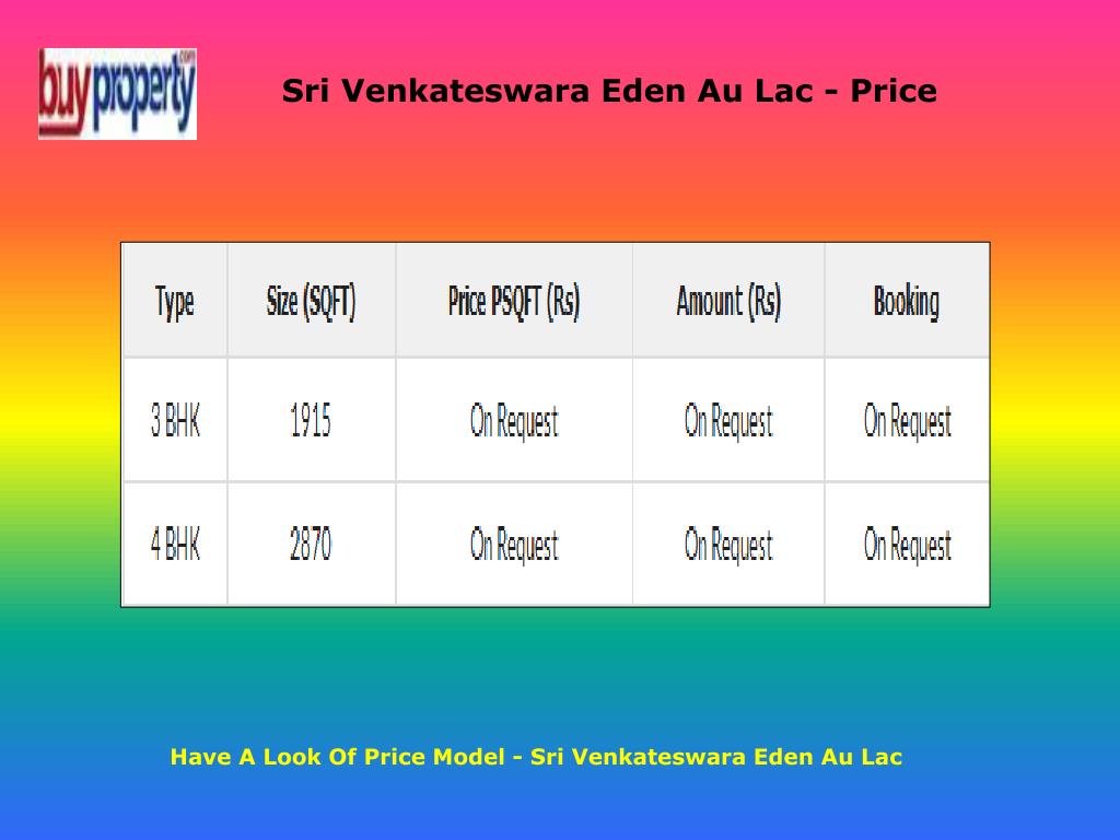 Sri Venkateswara Eden Au Lac - Price Have A Look Of Price Model - Sri Venkateswara Eden Au Lac