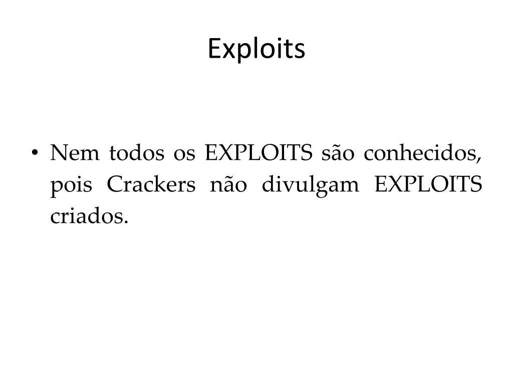 Exploits • Nem todos os EXPLOITS são conhecidos, pois Crackers não divulgam EXPLOITS criados.