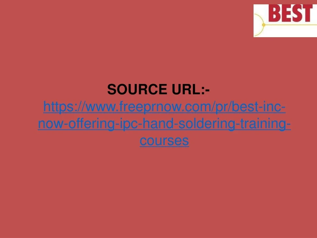 SOURCE URL:- https://www.freeprnow.com/pr/best-inc- now-offering-ipc-hand-soldering-training- courses