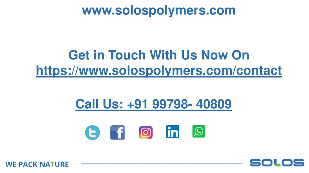 www.solospolymers.com Get in Touch With Us Now On https://www.solospolymers.com/contact Call Us: +91 99798- 40809