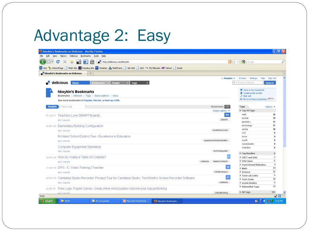 Let’s Review Which of the following is an advantage of using social bookmarks? • FREE! • On-line • Easy and Efficient • Encourages Collaboration • All of the above