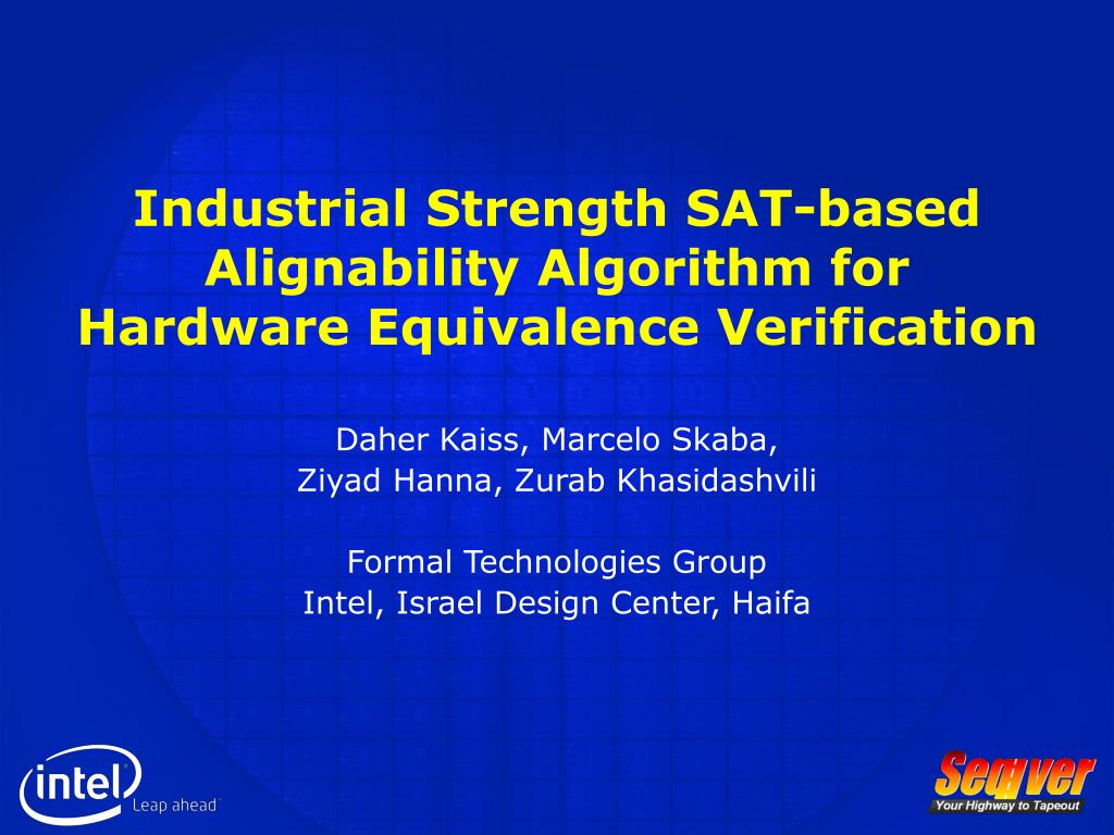 Industrial Strength SAT-based Alignability Algorithm for Hardware Equivalence Verification Daher Kaiss, Marcelo Skaba, Ziyad Hanna, Zurab Khasidashvili Formal Technologies Group Intel, Israel Design Center, Haifa