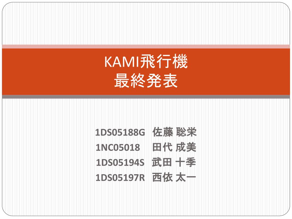 KAMI飛行機最終発表 1DS05188G 佐藤 聡栄 1NC05018 田代 成美 1DS05194S 武田 十季 1DS05197R 西依 太一