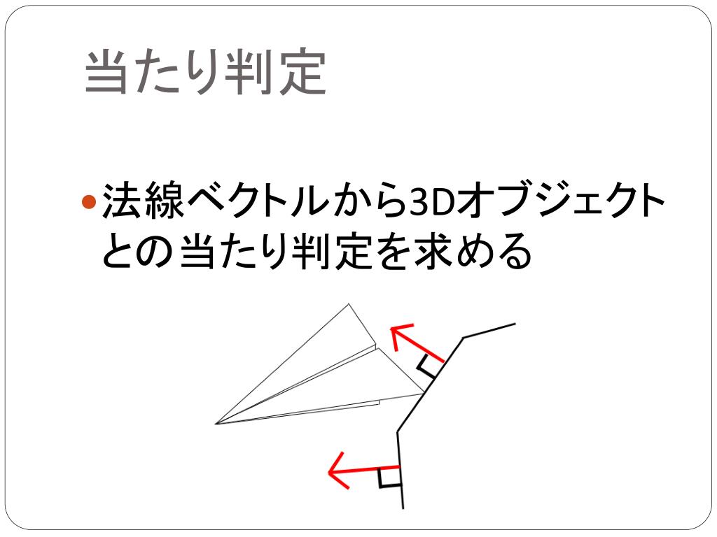 当たり判定 • 法線ベクトルから3Dオブジェクトとの当たり判定を求める