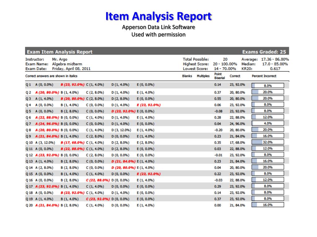 Item Analysis ReportApperson Data Link SoftwareUsed with permission
