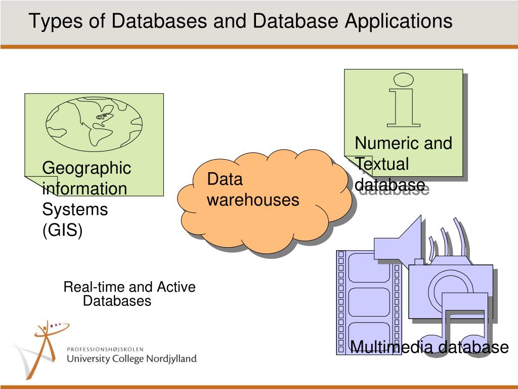 Multimedia database Numeric and Textual database Types of Databases and Database Applications Geographic information Systems (GIS) Real-time and Active Databases Data warehouses