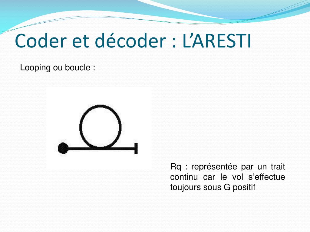 Coder et décoder : L’ARESTI Looping ou boucle : Rq : représentée par un trait continu car le vol s’effectue toujours sous G positif