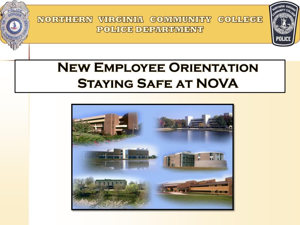 NORTHERN VIRGINIA COMMUNITY COLLEGE POLICE DEPARTMENT. New Employee Orientation Staying Safe at NOVA. NOVA Public Safety Team. 50 Virginia Commonwealth sworn Police officers with all police powers Hours of operation: 7:00 AM – 11:00 PM 8 Dispatchers (24/7/365)