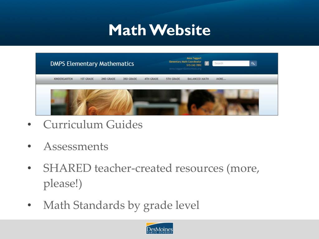 Math Website • Curriculum Guides • Assessments • SHARED teacher-created resources (more, please!) • Math Standards by grade level
