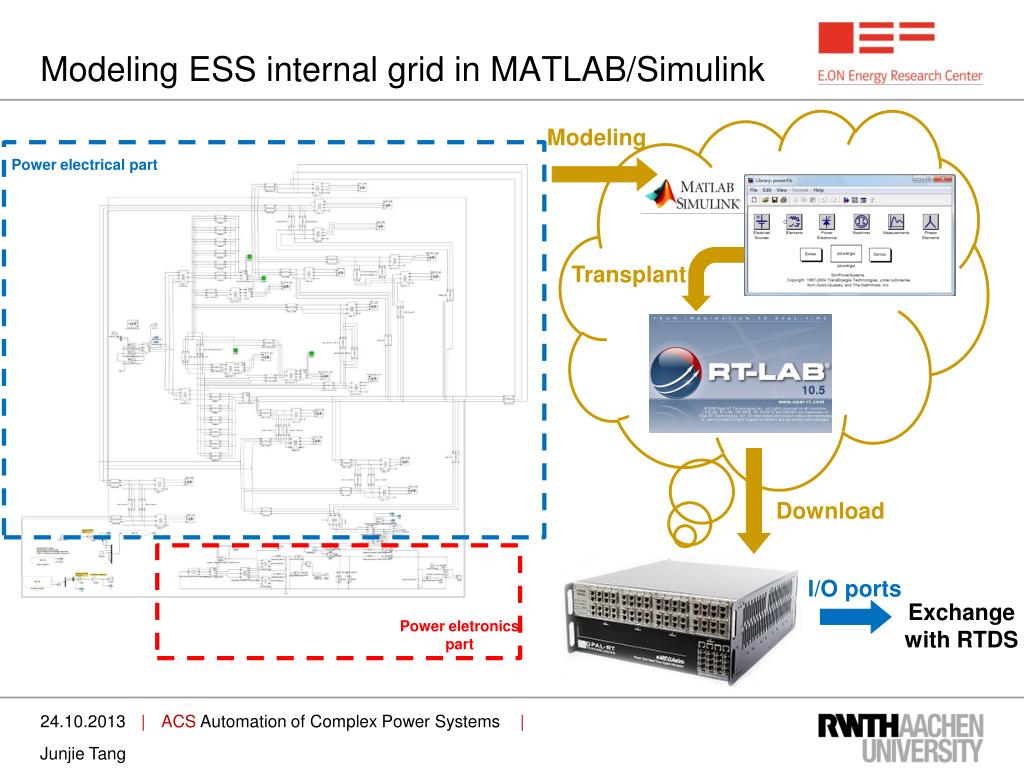 Modeling ESS internal grid in MATLAB/Simulink Modeling Power electricalpart Transplant Download I/O ports Exchange with RTDS Power eletronics part Junjie Tang