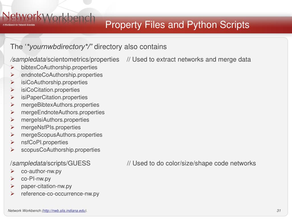 https://nwb.slis.indiana.edu/community/ Network Workbench (http://nwb.slis.indiana.edu). 16