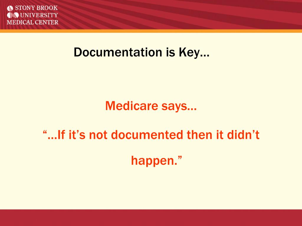 Documentation is Key… Medicare says… “…If it’s not documented then it didn’t happen.”