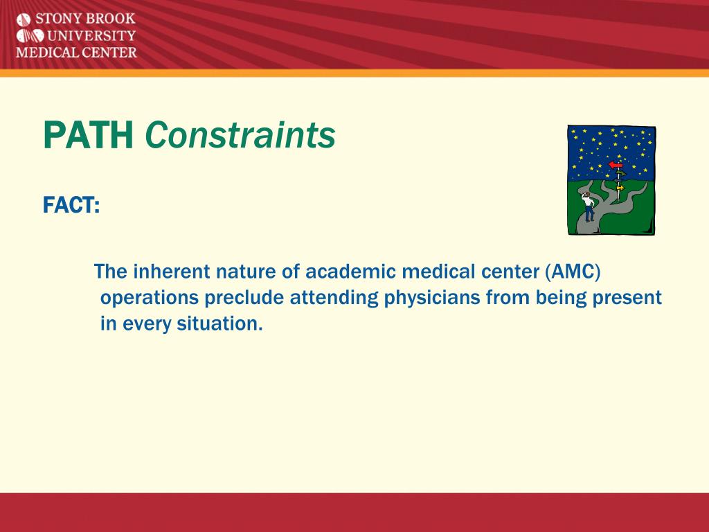 PATHConstraints FACT: The inherent nature of academic medical center (AMC) operations preclude attending physicians from being present in every situation.