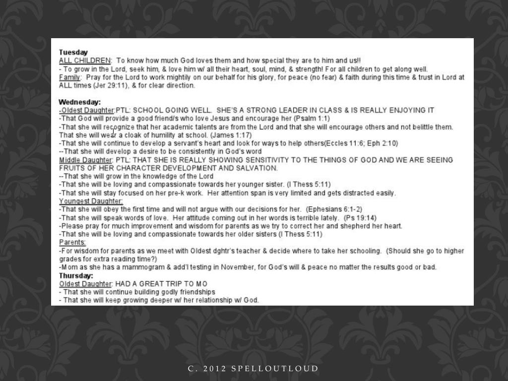 Lie #2: “In order to be a good mother I have to do ____, and ____, and _____.” c. 2012 SpellOutloud