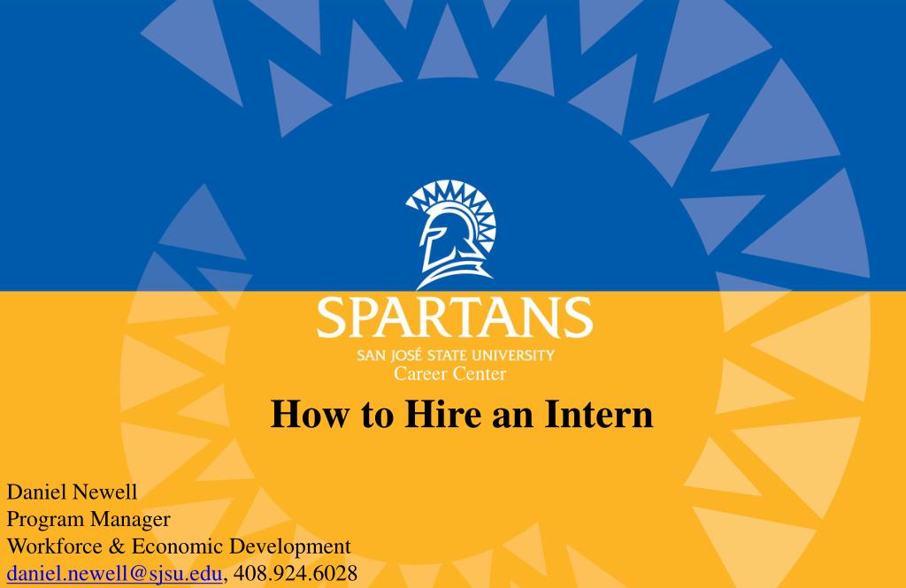 Career Center. How to Hire an Intern. Daniel Newell Program Manager Workforce & Economic Development daniel.newell@sjsu.edu , 408.924.6028. Learning Outcomes Define an internship and the fundamentals of a successful internship program