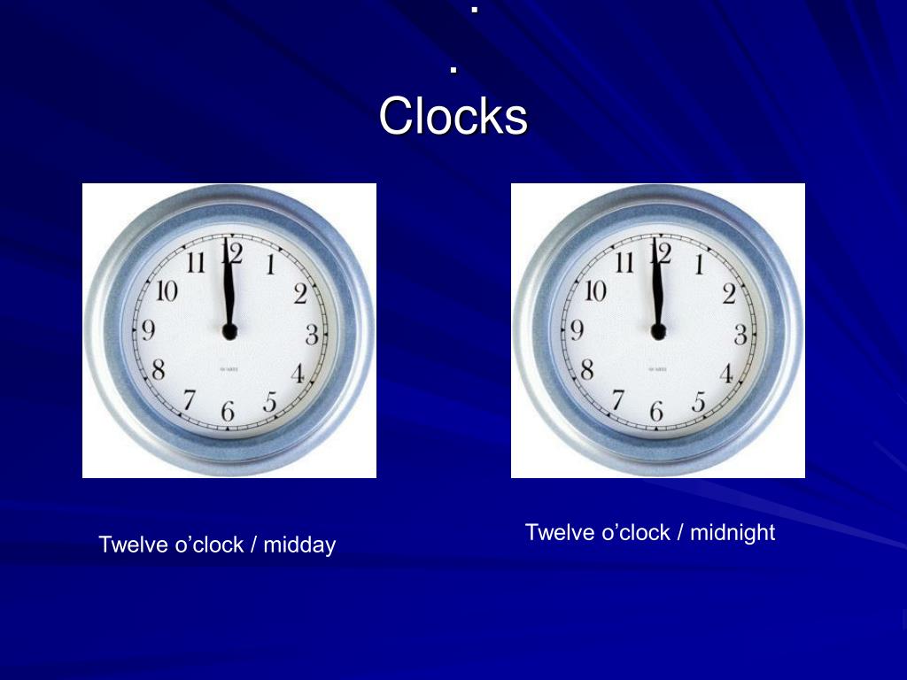 3. ..Clocks Twelve o’clock / midnight Twelve o’clock / midday