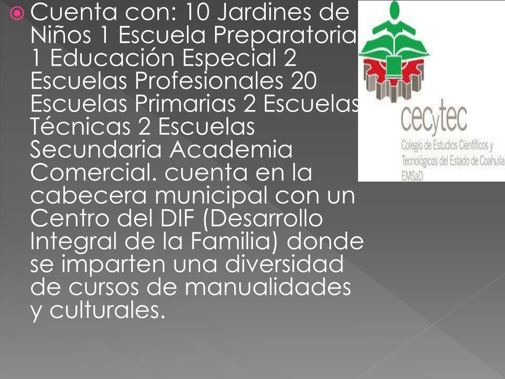 EDUCACIÓN • Se encuentran diversas Escuelas Primarias. • Hay 3 secundarias • Para la educación media superior se encuentra • El CECYTEC • CONALEP • Cetís.