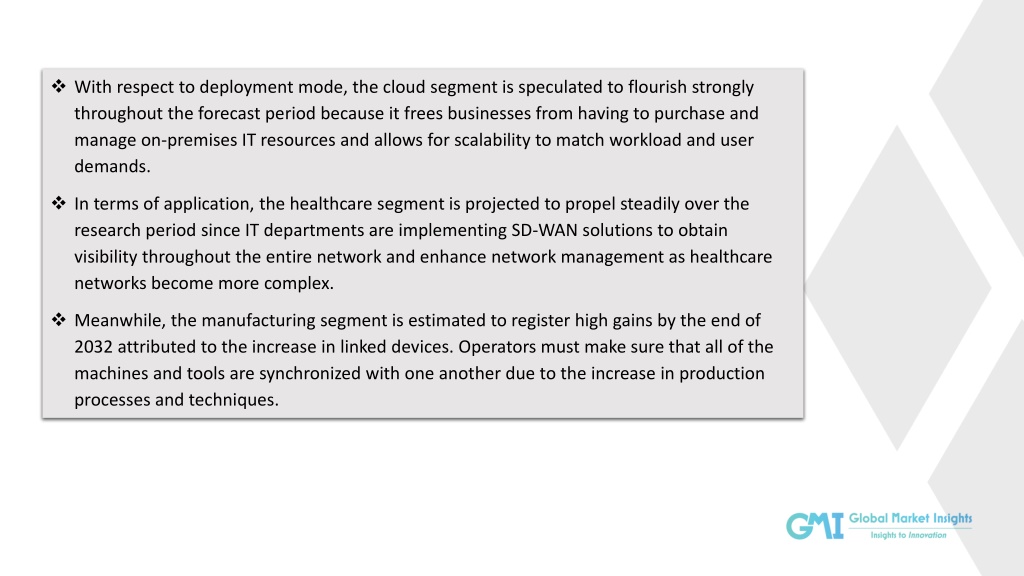 Software-Defined Wide Area Network (SD-WAN) Market@ https://www.gminsights.com/industry-analysis/software-defined-wide-area-network-sdwan-market Request for sample of this research report @ https://www.gminsights.com/request-sample/detail/2214 Request for customization: https://www.gminsights.com/roc/2214