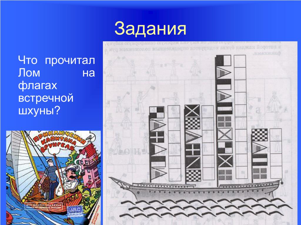 15. Задания Что прочитал Лом на флагах встречной шхуны?