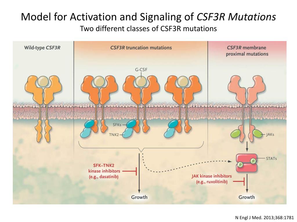 Model for Activation and Signaling of CSF3R MutationsTwo different classes of CSF3R mutations N Engl J Med. 2013;368:1781