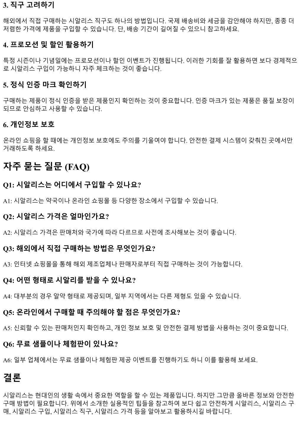 3. 직구고려하기 해외에서직접구매하는시알리스직구도하나의방법입니다. 국제배송비와세금을감안해야하지만, 종종더 저렴한가격에제품을구입할수있습니다. 단, 배송기간이길어질수있으니참고하세요. 4. 프로모션및할인활용하기 특정시즌이나기념일에는프로모션이나할인이벤트가진행됩니다. 이러한기회를잘활용하면보다경제적으 로시알리스구입이가능하니자주체크하는것이좋습니다. 5. 정식인증마크확인하기 구매하는제품이정식인증을받은제품인지확인하는것이중요합니다. 인증마크가있는제품은품질보장이 되므로안심하고사용할수있습니다. 6. 개인정보보호 온라인쇼핑을할때에는개인정보보호에도주의를기울여야합니다. 안전한결제시스템이갖춰진곳에서만 거래하도록하세요. 자주묻는질문 (FAQ) Q1: 시알리스는어디에서구입할수있나요? A1: 시알리스는약국이나온라인쇼핑몰등다양한장소에서구입할수있습니다. Q2: 시알리스가격은얼마인가요? A2: 시알리스가격은판매처와국가에따라다르므로사전에조사해보는것이좋습니다. Q3: 해외에서직접구매하는방법은무엇인가요? A3: 인터넷쇼핑몰을통해해외제조업체나판매자로부터직접구매하는것이가능합니다. Q4: 어떤형태로시알리를받을수있나요? A4: 대부분의경우알약형태로제공되며, 일부지역에서는다른제형도있을수있습니다. Q5: 온라인에서구매할때주의해야할점은무엇인가요? A5: 신뢰할수있는판매처인지확인하고, 개인정보보호및안전한결제방법을사용하는것이중요합니다. Q6: 무료샘플이나체험판이있나요? A6: 일부업체에서는무료샘플이나체험판제공이벤트를진행하기도하니이를활용해보세요. 결론 시알리스는현대인의생활속에서중요한역할을할수있는제품입니다. 하지만그만큼올바른정보와안전한 구매방법이필요합니다. 위에서소개한실용적인팁들을참고하여보다쉽고안전하게시알리스, 시알리스구 매, 시알리스구입, 시알리스직구, 시알리스가격등을알아보고활용하시길바랍니다.