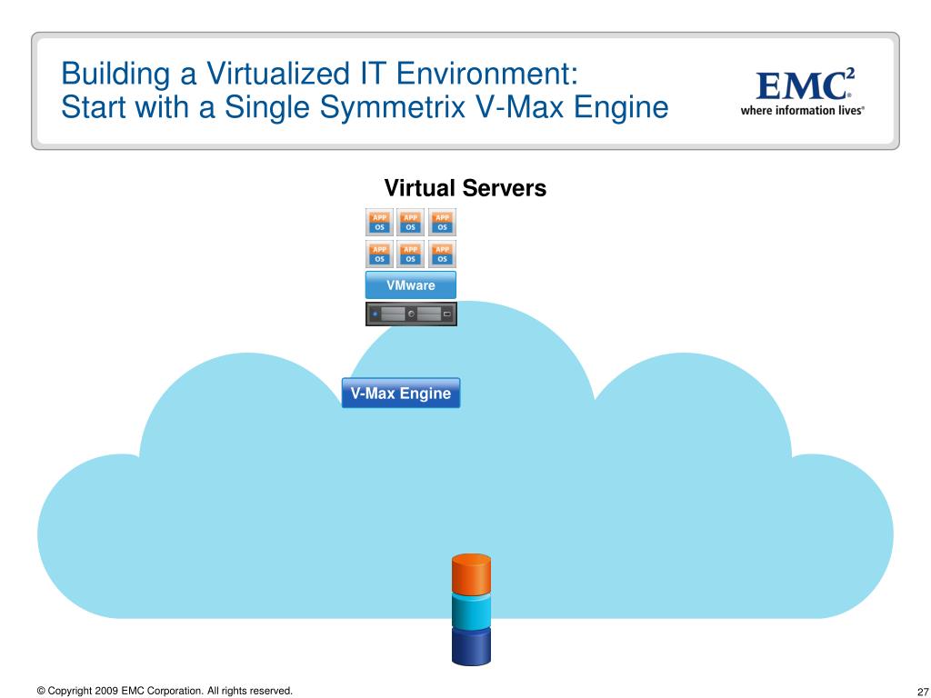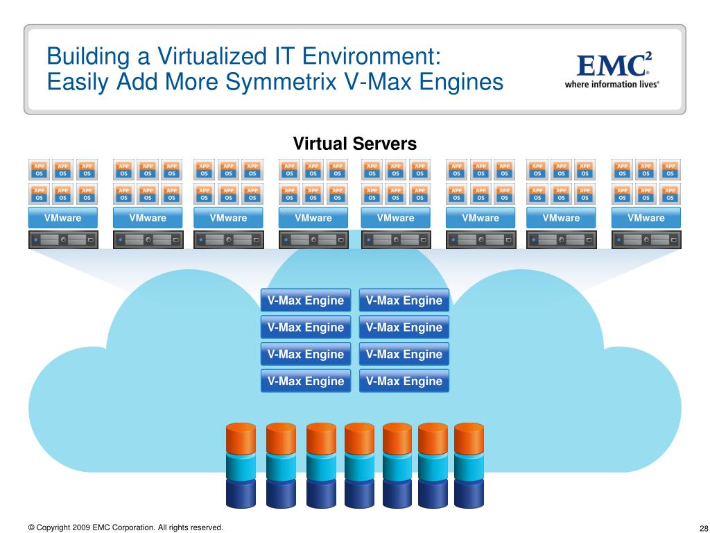 Building a Virtualized IT Environment:Easily Add More Symmetrix V-Max Engines VMware V-Max Engine V-Max Engine V-Max Engine V-Max Engine V-Max Engine V-Max Engine V-Max Engine V-Max Engine VMware VMware VMware VMware VMware VMware VMware Virtual Servers