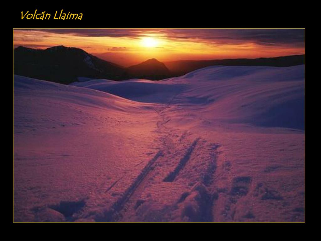 Paisajes chilenos. Música: La partida – Vïctor Jara con Inti Illimani (instrumental) . Atardecer sobre volcán Callaqui . Ballena en Estrecho de Magallanes. Cajón del Maipo . Moais – Isla de Pascua . Canal de Magallanes . Castillo Wulff – Viña del Mar . San Pedro de Atacama .