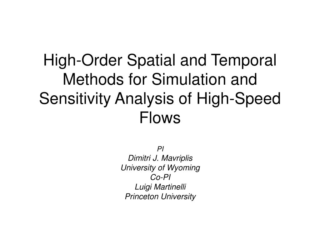 High-Order Spatial and Temporal Methods for Simulation and Sensitivity Analysis of High-Speed Flows PI Dimitri J. Mavriplis University of Wyoming Co-PI Luigi Martinelli Princeton University