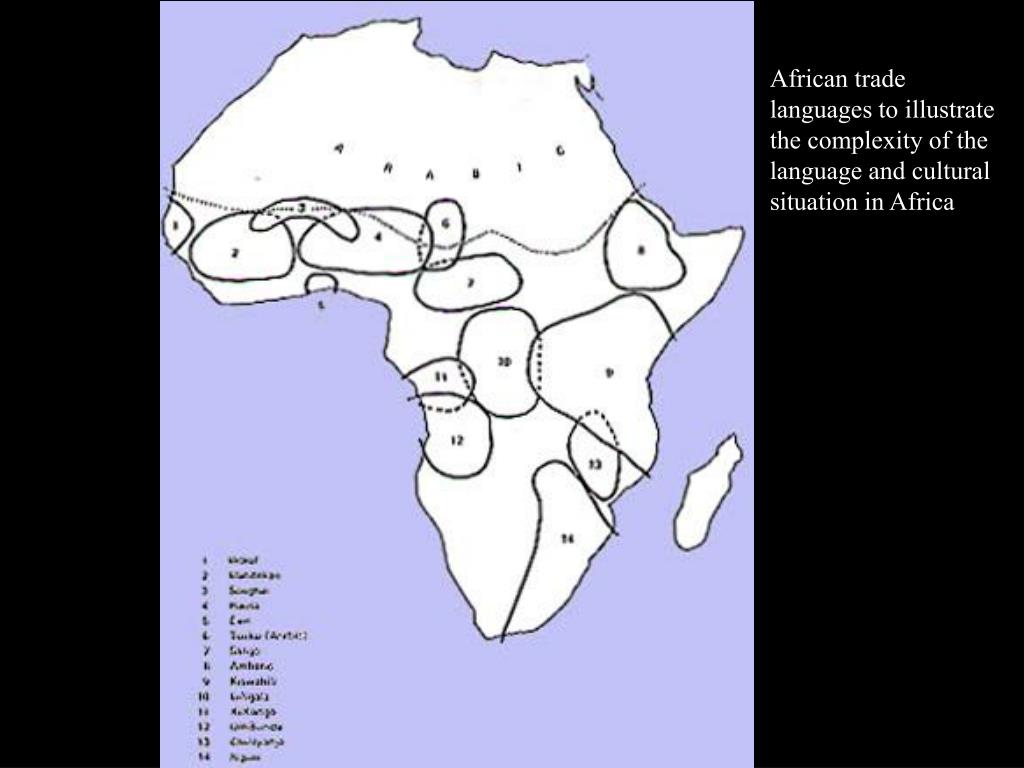 African trade languages to illustrate the complexity of the language and cultural situation in Africa
