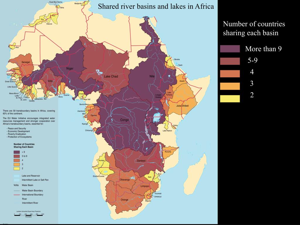 Shared river basins and lakes in Africa Number of countries sharing each basin More than 9 5-9 4 3 2