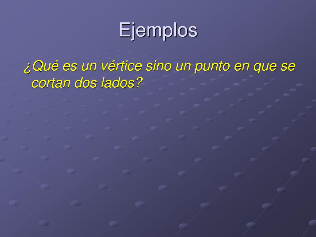 Ejemplos ¿Qué es un vértice sino un punto en que se cortan dos lados?