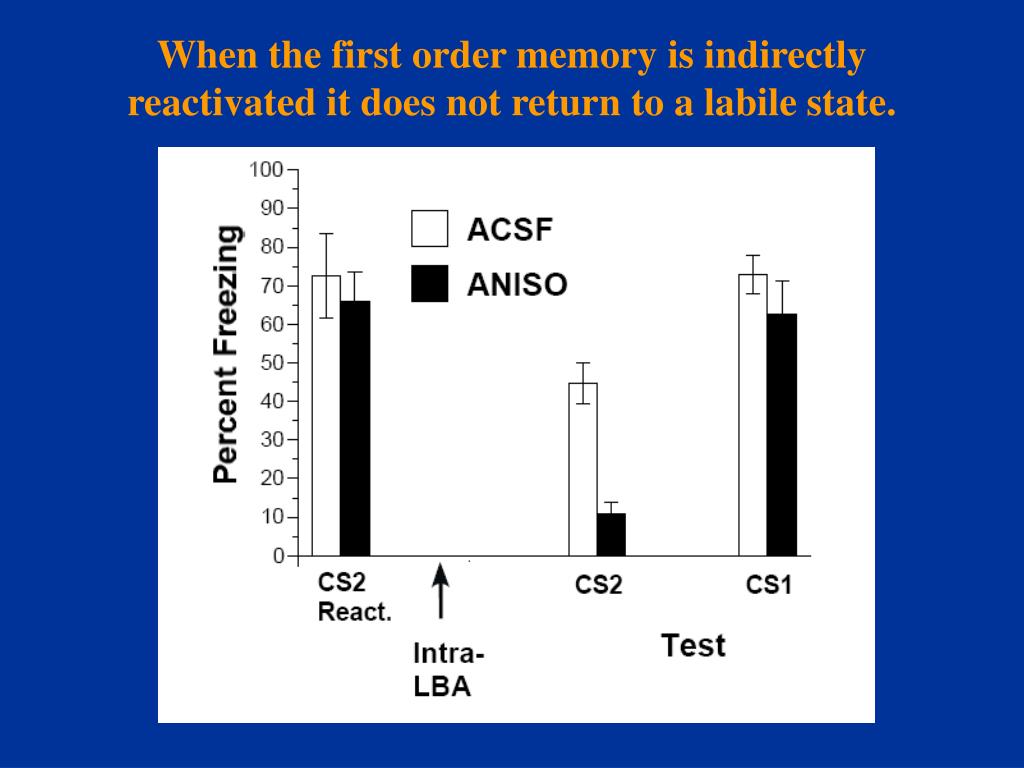 Summary • The findings that direct, but not indirect, reactivation of CS1 induced reconsolidation of the first order memory suggests that reconsolidation may be restricted to those aspects of a memory or memories that are directly reactivated.