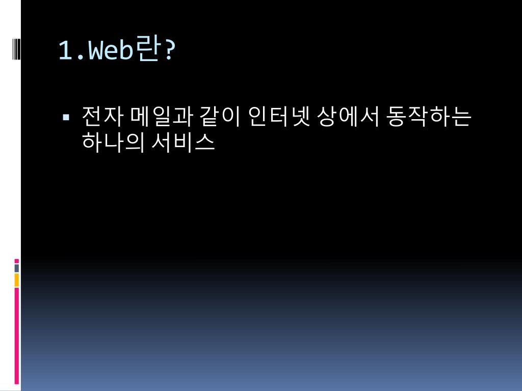 1.Web란? • 전자 메일과 같이 인터넷 상에서 동작하는 하나의 서비스