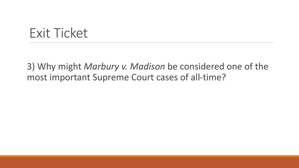 Exit Ticket 3) Why might Marbury v. Madison be considered one of the most important Supreme Court cases of all-time?