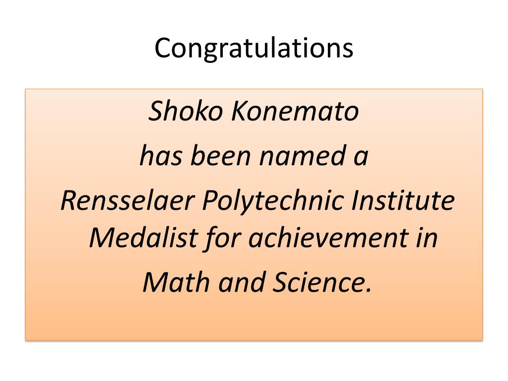 Congratulations Shoko Konemato has been named a Rensselaer Polytechnic Institute Medalist for achievement in Math and Science.