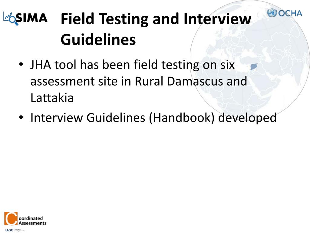 Field Testing and Interview Guidelines • JHA tool has been field testing on six assessment site in Rural Damascus and Lattakia • Interview Guidelines (Handbook) developed