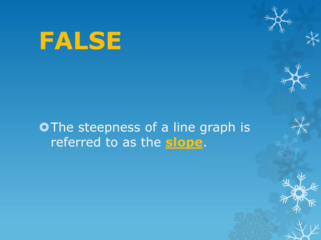 FALSE • The steepness of a line graph is referred to as the slope.